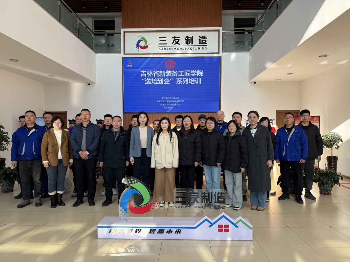 11月13日上午,吉林省新装备工匠学院“送培到企”系列培训项目在长春三友汽车部件制造有限公司(以下简称“三友公司”)正式启动。吉林省汽车产业工会副主席李一明,三友公司副总经理杨芳、党群综合部部长姚爽、副总工程师韩秀红,我校培训与继续教育学院技能培训工作负责人李莹、电气工程学院自动化技术教研室主任刘晓波出席开班仪式。